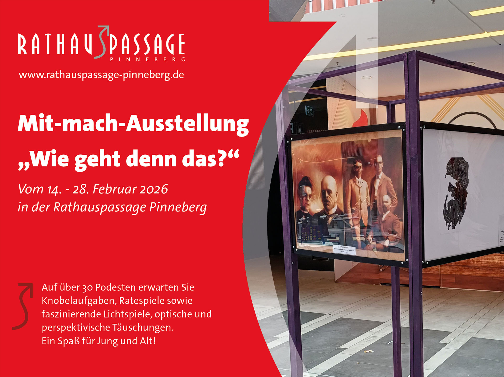 Interaktive Knobel- und Täuschungswelt – vom 14. bis 28. Februar 2026 unsere interaktive Mitmach-Aktion „Wie geht denn …? – zu Gast in der Rathauspassage Pinneberg